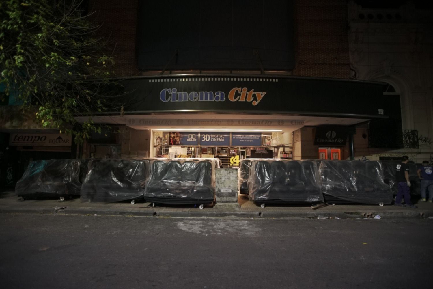 Cubiertos con nylon, llamaron la atención en la vereda de Cinema City. No obstante, el nuevo ploteo de la entrada de vidrio de 50 entre 9 y 10 ya lo anticipaba: “Próximamente 4D E- Motion. Tus sentidos en una nueva dimensión”.