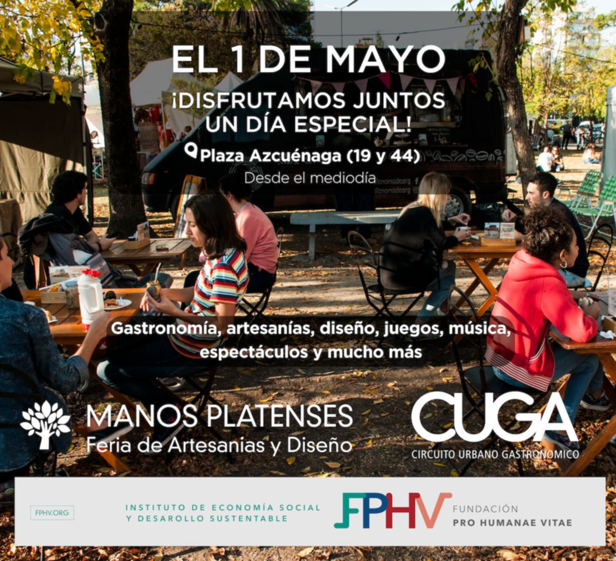 La Fundación Pro Humanae Vitae realizará este miércoles un evento gastronómico en Plaza Azcuénaga para celebrar el Día del Trabajador. El encuentro contará con stands de emprendimientos locales que incluyen comidas típicas, cafés, pastelerías y jugos tropicales, entre otras propuestas que incluye el circuito CUGA.
