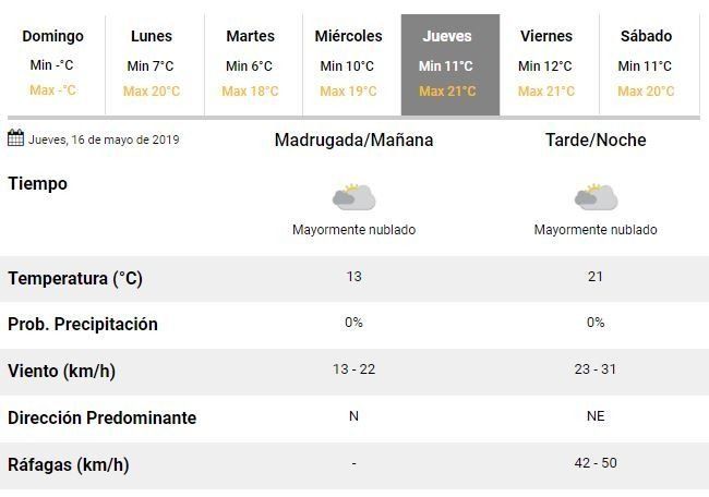 Este lunes la mínima se ubicará en torno a los 7°C, mientras que la máxima rondará los 20°C. En esa línea, se espera una jornada con buen tiempo y cielo despejado con vientos que podrían alcanzar hasta unos 30 km/h durante la noche, soplando desde el sudeste.