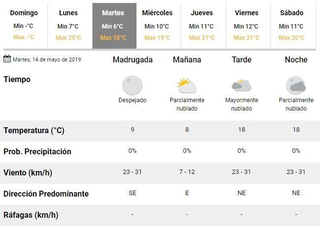 Para este martes, en tanto, se aguarda la que las temperaturas sean de las más bajas de la semana, ubicándose entre los 6 y los 18°C. De acuerdo con los meteorólogos la nubosidad irá en aumento, pero no habrá posibilidades de lluvias.