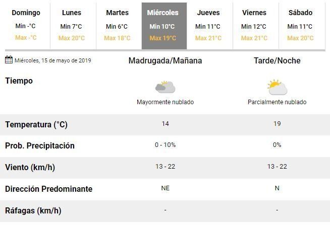 El miércoles se mantendrán condiciones climáticas similares y lo mismo se espera para el jueves, aunque los especialistas advierten que podrían registrarse algunas ráfagas de viento de entre 42 y 50 km/h en la ciudad. En ese marco, el SMN adelantó que la temperatura variará entre los 10 y 19°C y los 11 y 21°C, respectivamente.