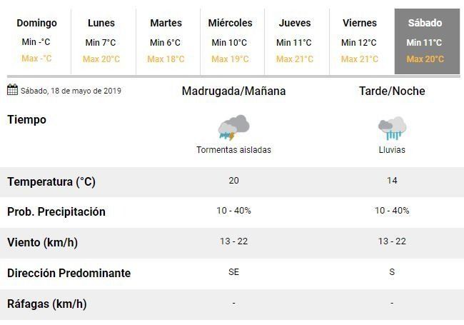 Finalmente, el sábado podrían volver las lluvias. Los profesionales del SMN adelantaron que se aguardan tormentas aisladas en el comienzo del fin de semana, con una temperatura que variará entre los 11 y los 20°C.
