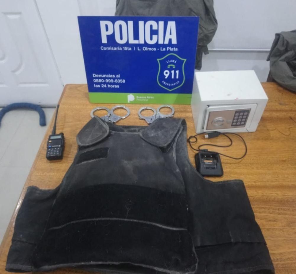 Durante el allanamiento, las autoridades lograron incautar un chaleco antibalas, dos juegos de esposas, un equipo de comunicación y una caja de seguridad. "Teníamos el dato de que en el lugar estaba la gente que había cometido los robos y procedimos a secuestrar todos esos elementos de prueba", indicaron.