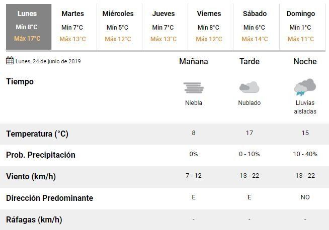 Arranca una nueva semana en la ciudad y los especialistas adelantaron que el tiempo será fresco e inestable durante los próximos días. El lunes amaneció con niebla y bajas temperaturas: se estima que la mínima rondará los 8 a 10°C y la máxima podría alcanzar los 17°C.
