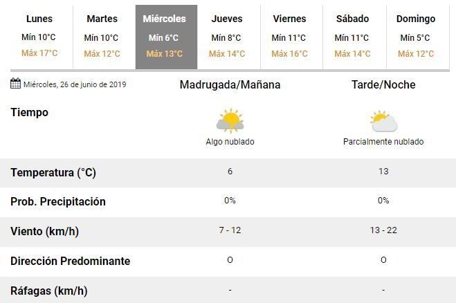 El tiempo mejorará hacia la mañana del miércoles, para cuando se prevé un clima fresco pero con sol en la ciudad.