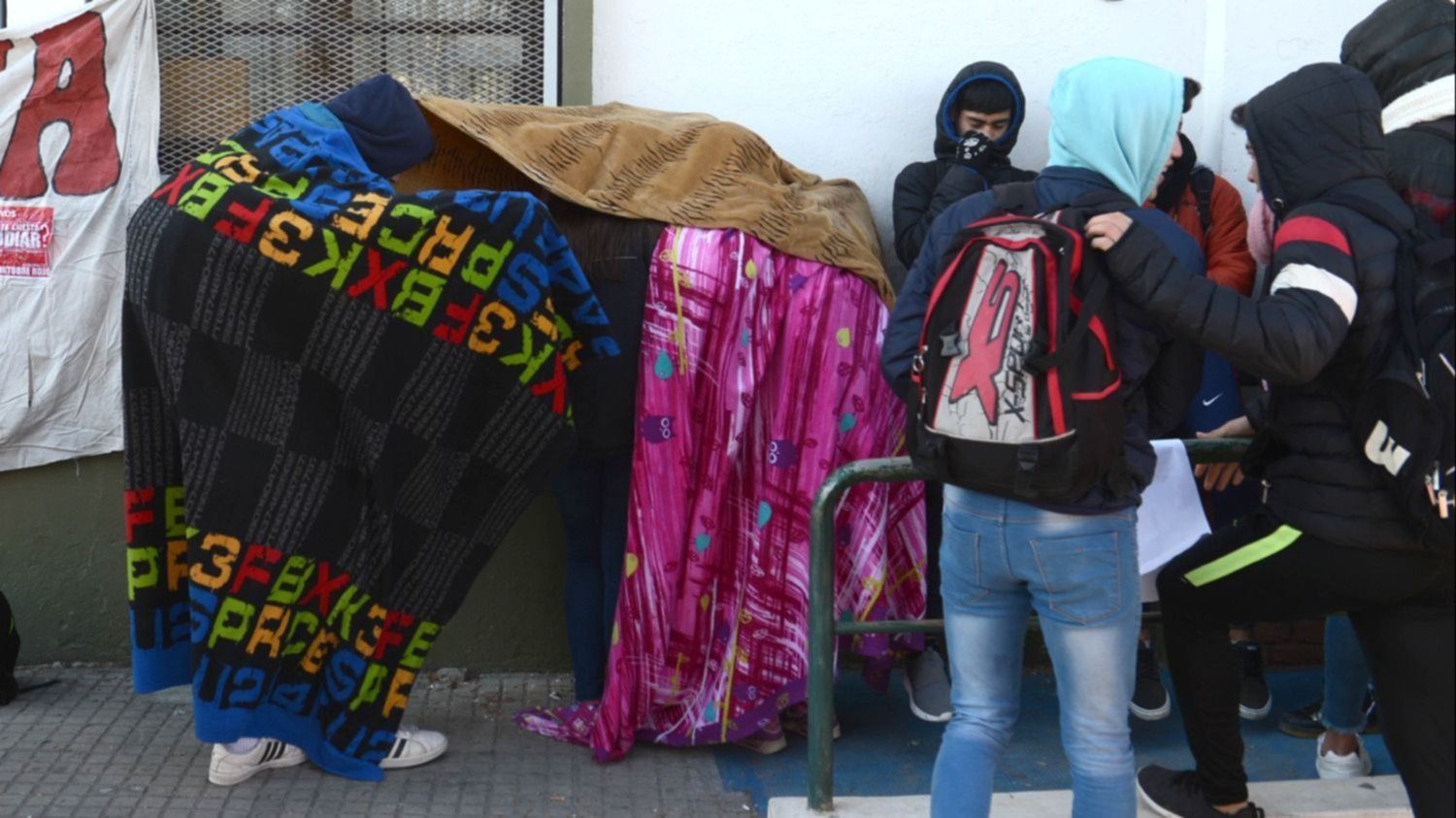 La Escuela Normal N° 2 se plegó a los "frazadazos" que se multiplican día a día en La Plata, como forma de protesta ante la falta de gas, estufas y diversos problemas de infraestructura que se denuncian en los colegios de la región.