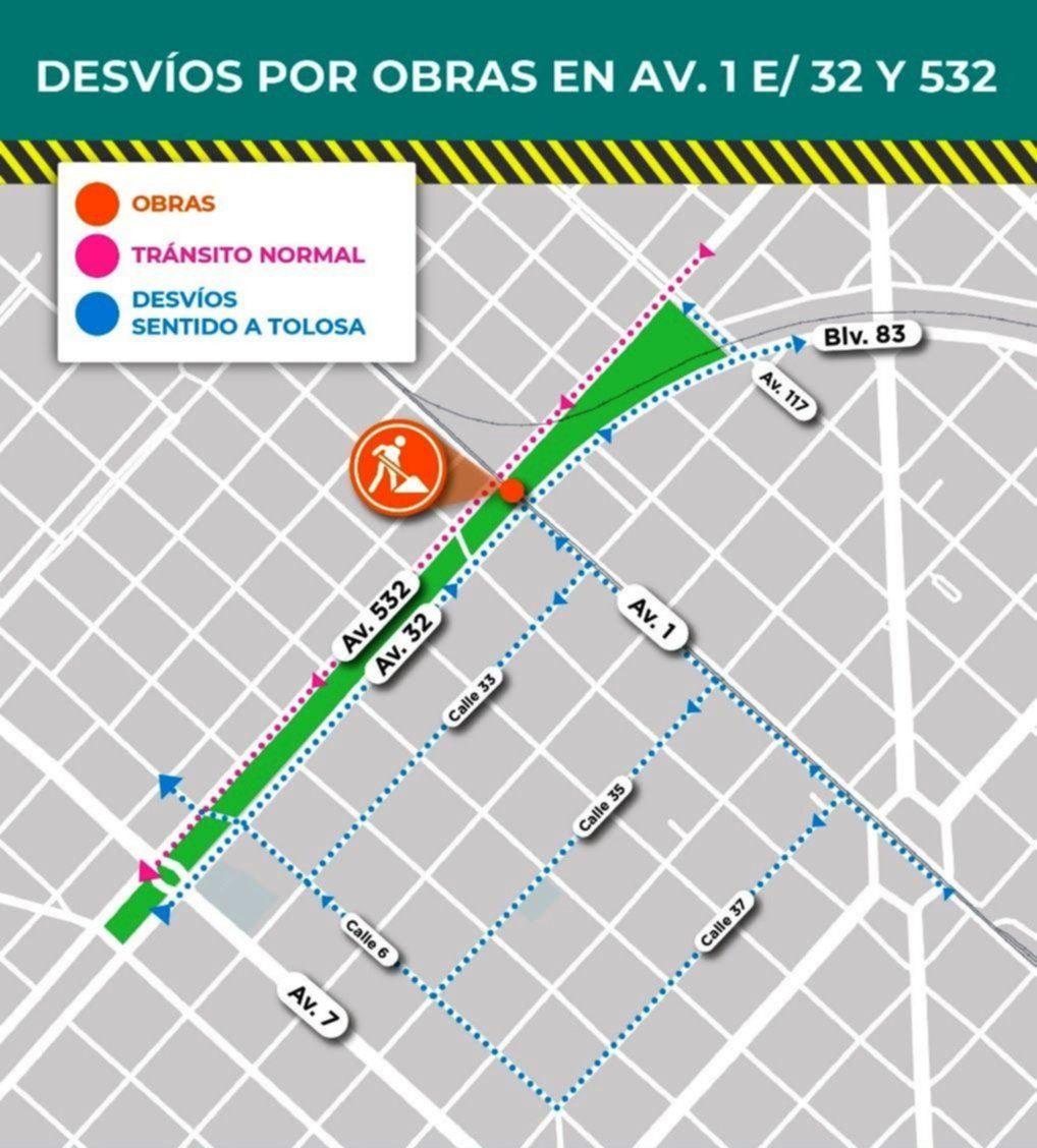 A su vez, quienes transiten por la mano más cercana de la avenida 120, podrán llegar a 32 y continuar por el boulevard 83 hasta 117 para seguir por esta vía o empalmar 532 a esa altura.