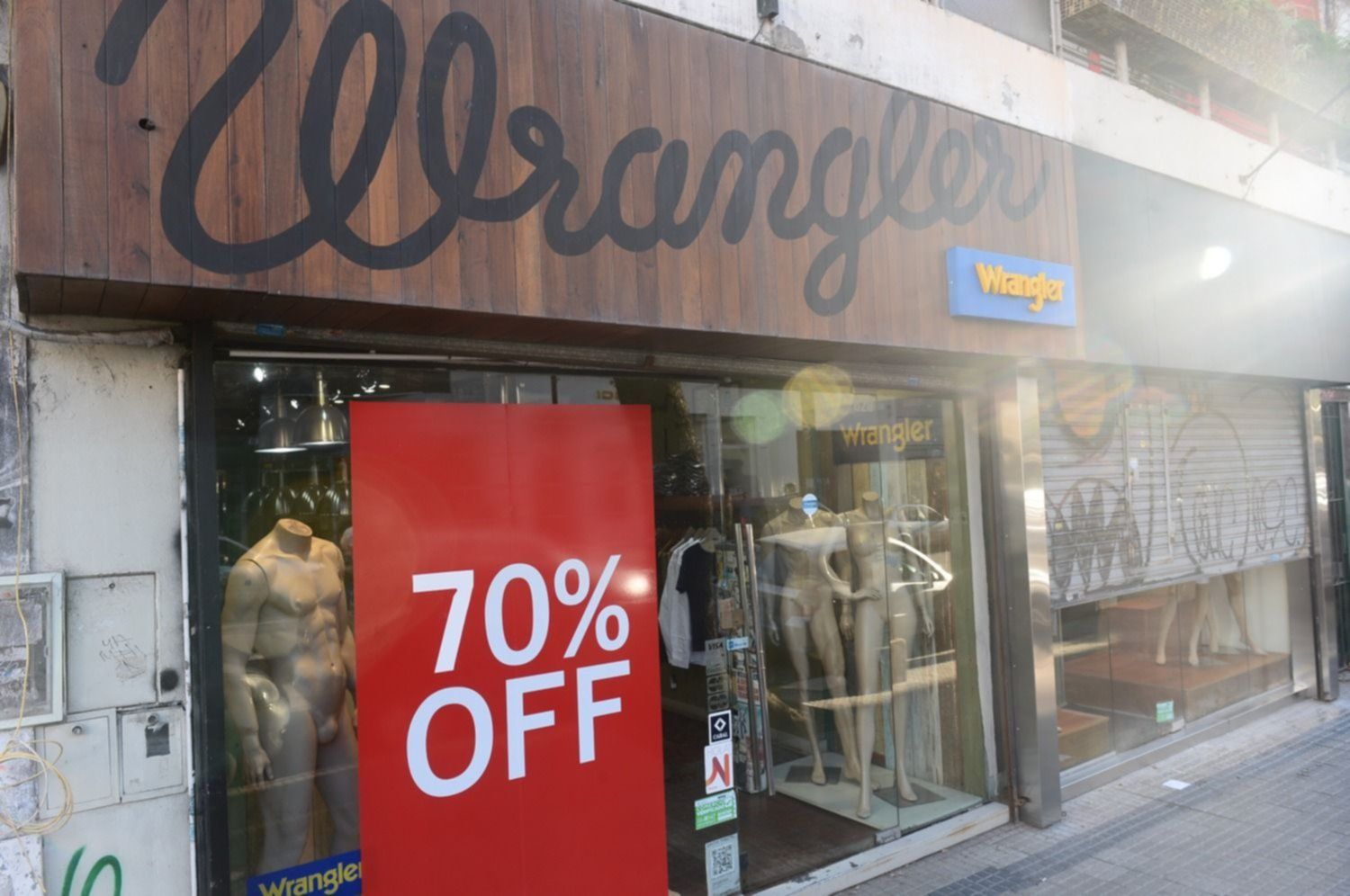 Un 70%. Ese es el jugoso descuento que ofrecen en el Wrangler ubicado en pleno centro de La Plata y que el próximo jueves se despedirá de la ciudad. "Somos una franquicia, por eso vamos a cerrar pero reabriremos con una nueva marca", le explicó una de las encargadas del local a 0221.com.ar.