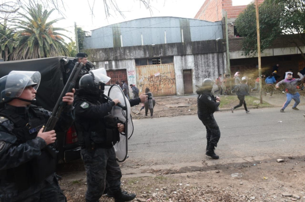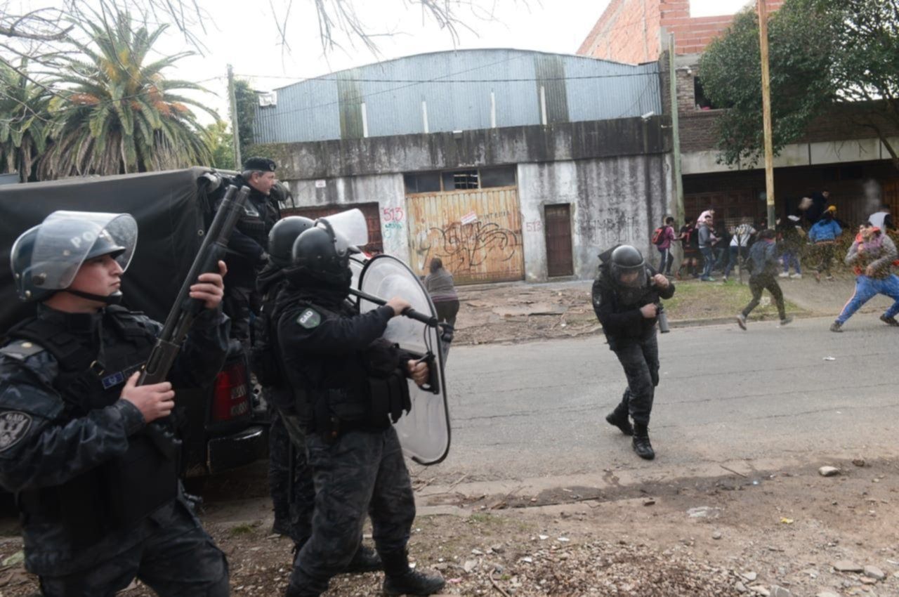 De esta manera, los agentes realizaron un cordón para tratar de sacarlo, pero se generaron disturbios con los presentes. Mientras algunos tiraban piedras otros trataban de acercarse al implicado para agredirlo. Debido a esto, la Policía efectuó detonaciones con balas de goma y arrojó gas lacrimógeno para repeler a la multitud y así trasladar al hombre.