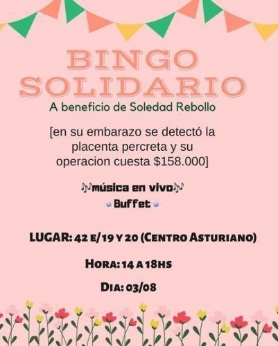 Además, el 3 de agosto se hará un Bingo Solidario, con música, buffet y sorteos en el Centro Asturiano, de 42 entre 19 y 20, de 14 a 18. El valor de la entrada serpa de 30 pesos.