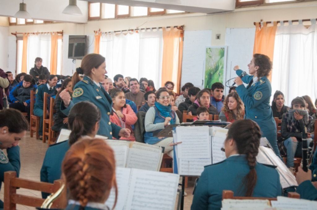 La muestra continuó con un relato en el que, a modo didáctico, los músicos repasaron cada uno de los instrumentos que utilizan. "Narramos un cuento donde la forma de la organización de la banda se presenta como una analogía a la constitución de un barrio", explicó la directora de la banda, Raquel Kehoe.