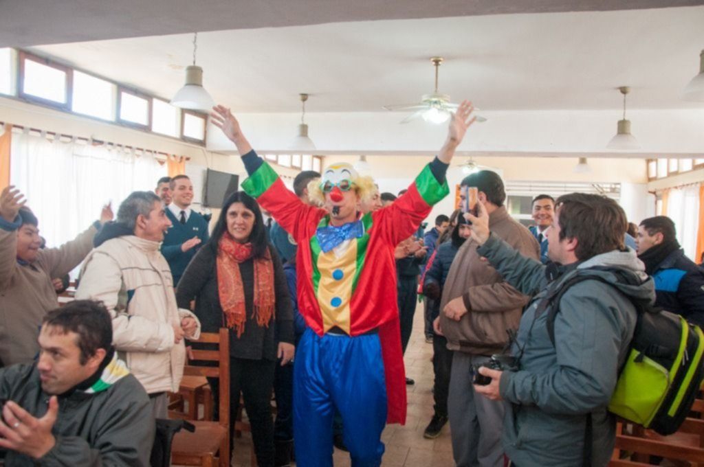 Una de las sorpresas fue la aparición en la escena de una brujita, a cargo de la narradora y titiritera Roxana Ducker. La otra, fue un cadete vestido de payaso que animó y bailó con los presentes durante más de media hora.