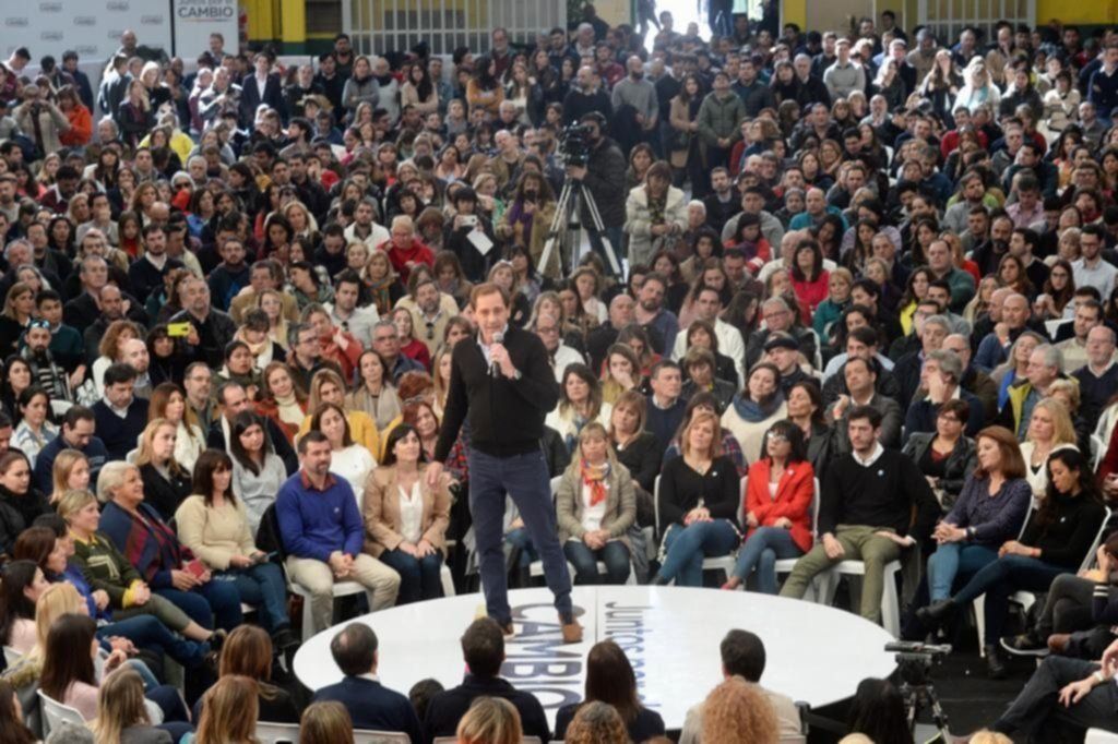 La Gobernadora subió al escenario al ritmo de un nuevo jingle de campaña que decidió estrenar en la ciudad. En ese marco, fue precedida por los ministros de Educación de la Nación, Alejandro Finocchiaro; y de la Provincia, Gabriel Sánchez Zinny; y el intendente platense Julio Garro.