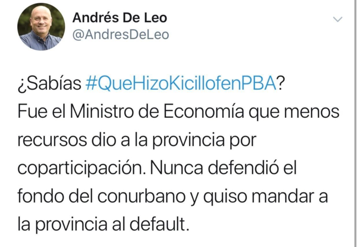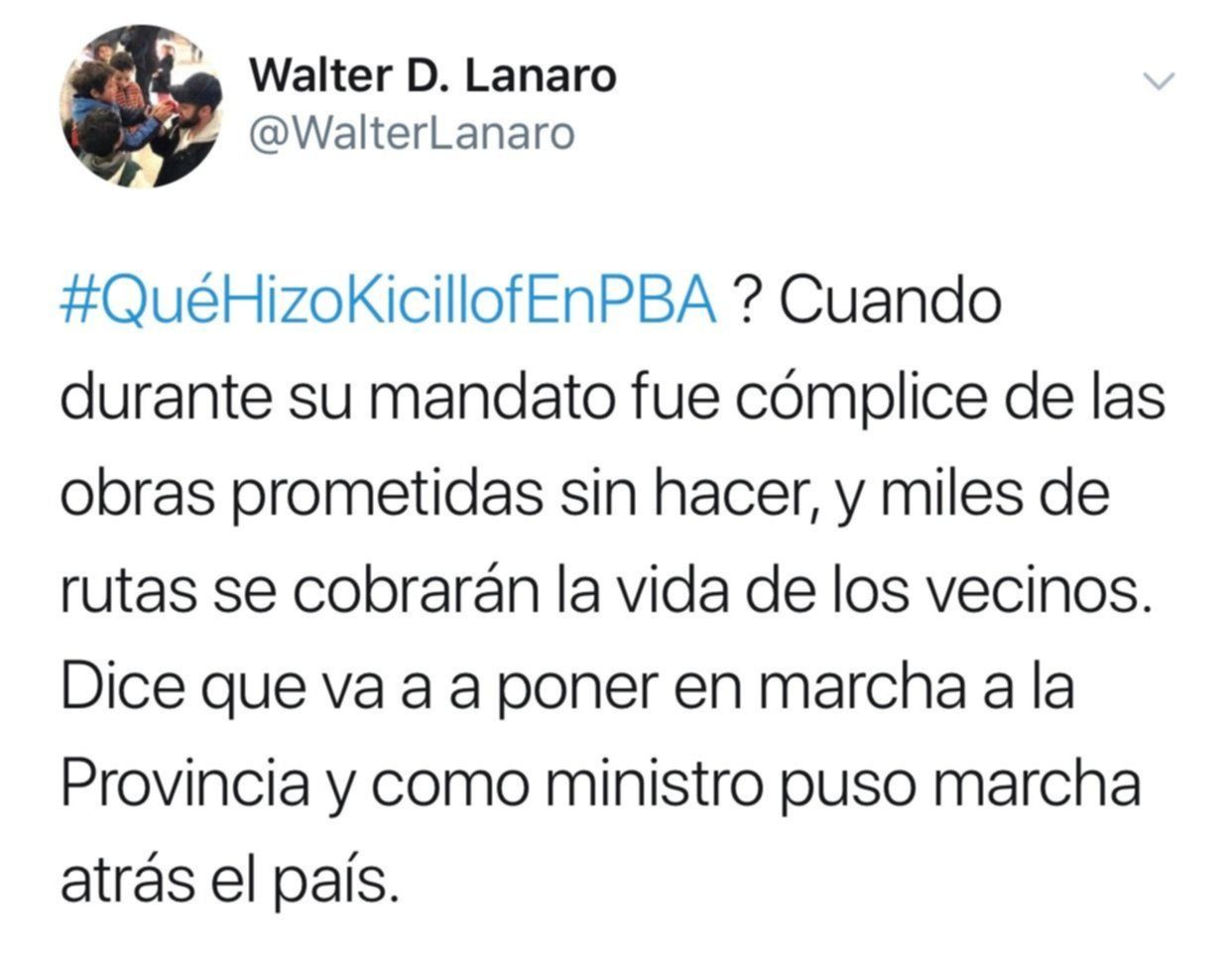 El precandidato que encabezará la lista a senadores por la octava sección que llevará a Julio Garro como candidato a Intendente, Juan Pablo Allan, también se sumó a la catarata de mensajes y apuntó contra el ex Ministro de Economía. "¿Saben #QuéHizoKicillofEnPBA? Dejó solos a los vecinos en las inundaciones de #LaPlata frenando los recursos para las obras por internas políticas", escribió.