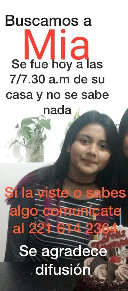 Cualquier información que puedan acercar a la familia de Mia puede comunicarse al teléfono de su madre: 221-614-2567.
