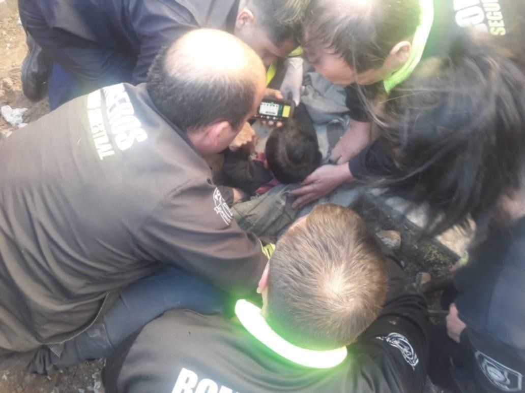 El hecho ocurrió este jueves por la tarde en una vivienda ubicada sobre calle 115 y 515. La criatura cayó en una cámara de inspección de 20 centímetros por 20, tipo rejilla de sumidero, donde quedó atrapado. Su cuerpo estaba dentro y la cabeza fuera, por lo que los rescatistas tuvieron que remover el concreto que rodeaba el desagüe para agrandar el hueco y poder retirarlo.