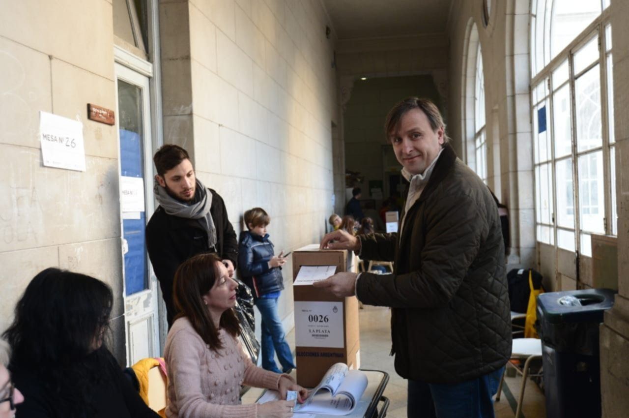 “Esperá, esperá...”, le dijeron a Carlos Ortelli los periodistas que se encontraban aguardando para retratar el momento en el que el precandidato a intendente hacía efectivo su voto.
