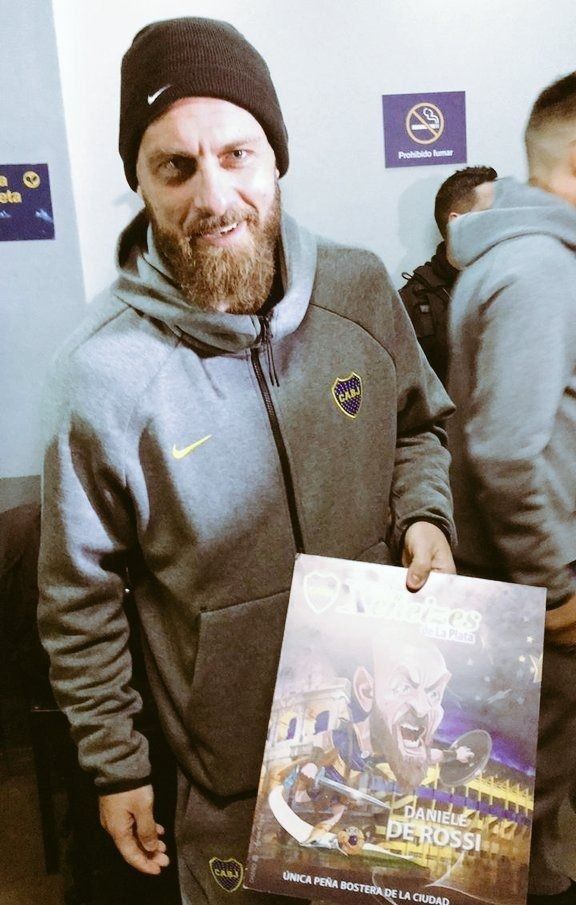 El italiano Daniele De Rossi vivió una noche muy especial en su debut en La Bombonera. Es que además del triunfo 2 a 0 ante Aldosivi y miles de muestras de afecto por parte de los hinchas, el ex futbolista de la Roma recibió un cuadro con su caricatura de parte de la peña Los Xeneizes de La Plata.