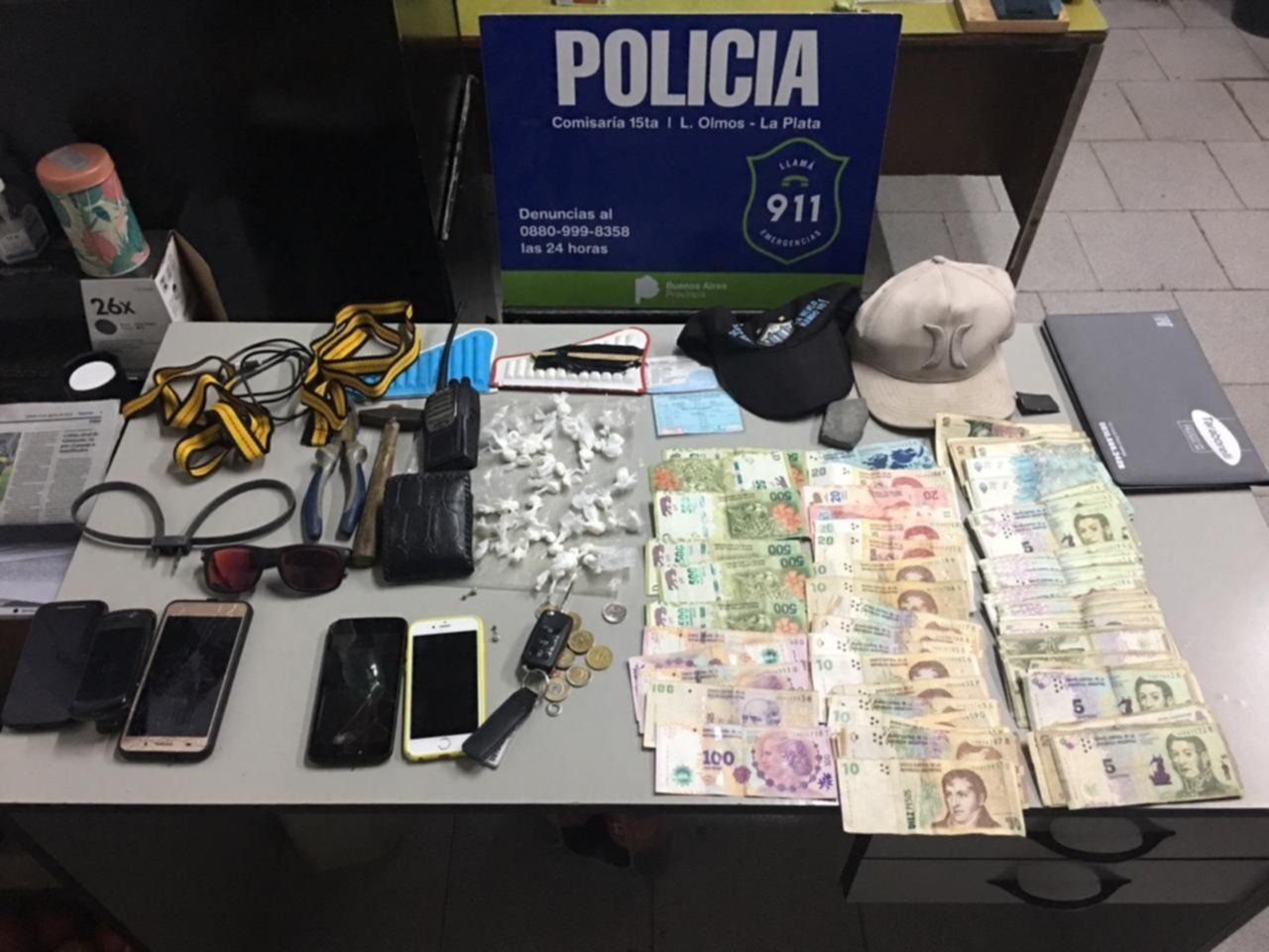 Sin embargo, enterados de la situación los efectivos de la comisaría Decimoquinta llevaron a cabo un operativo cerrojo para dar con ellos. Según las fuentes, se desplazaban en un Volkswagen Bora en el cual se secuestraron cinco celulares, precintos de plástico, dos pinzas, dos silbatos de afilador, dos cuerdas, tres gorras, un equipo de comunicación UHF, un martillo, las dos bicicletas y 4.555 pesos.