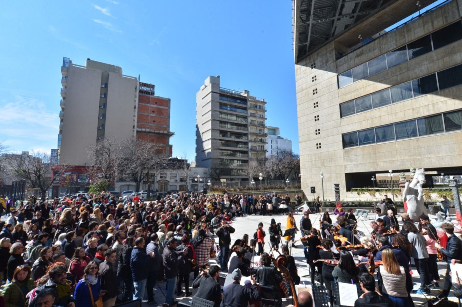 Los trabajadores del Teatro Argentino realizaron una función artística de protesta para visibilizar sus reclamos por las malas condiciones en las que se encuentra el emblemático edificio de 51 entre 9 y 10 y exigir una urgente apertura de paritarias. La obra se desarrolló en la explanada y contó con la participación de los cuerpo de ballet, coro y orquesta estables, así como de los talleres de producción escenográfica y de vestuario.
