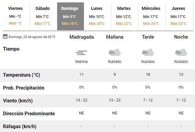 Para el domingo, en tanto, se espera otra jornada con cielo nublado y poco sol. La mínima prevista para el cierre del fin de semana es de 9°C y la máxima podría alcanzar unos 18°C.