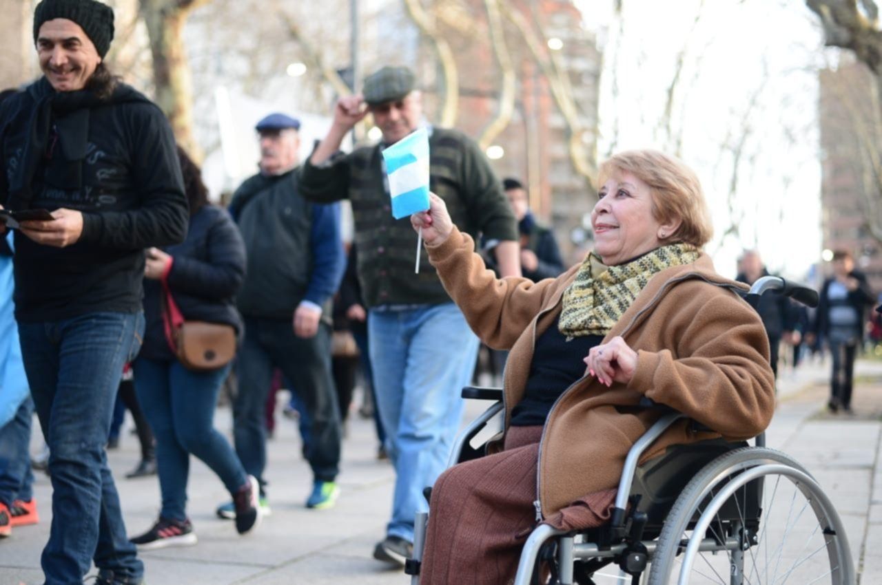 Cientos de vecinos de La Plata -la mayoría adultos mayores- marcharon este sábado 24 de agosto en Plaza Moreno en señal de respaldo al gobierno Nacional, en el marco de la convocatoria que se replicó en diferentes puntos del país.