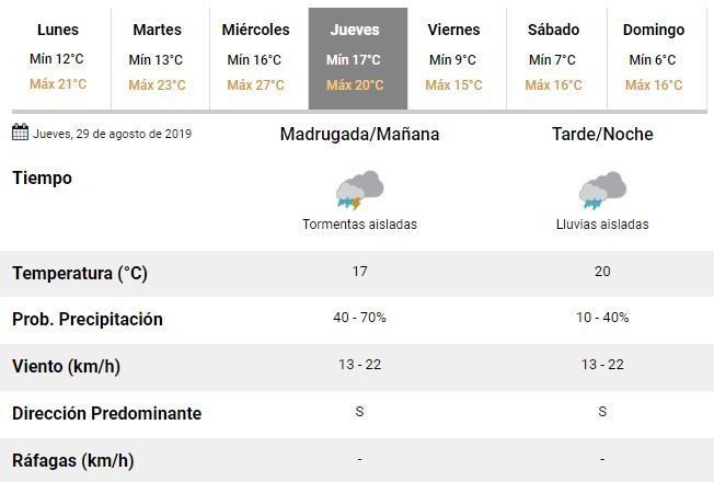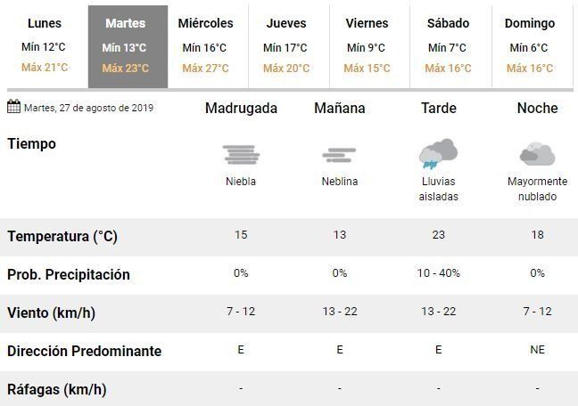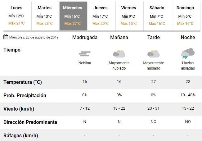 Para el miércoles, además, se espera otro día "mayormente nublado" y con temperaturas que irán desde los 16 hasta los 27°C.