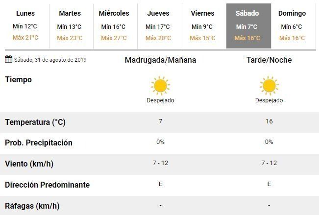 Tras las lluvias, finalmente, se registrará un fuerte descenso de la temperatura y por ello se prevé que durante el viernes y el fin de semana las temperaturas oscilen entre los 6 y los 16°C.