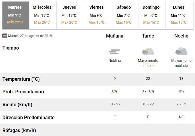 De acuerdo con el SMN, el martes transcurrirá sin mayores problemas para los platenses, aunque será una jornada con abundante nubosidad y calor, con viento soplando desde el este y noreste de la ciudad.