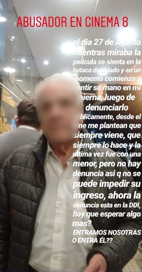 Este miércoles se reunió con las autoridades de Cinema Ocho. Las propias autoridades del cine le indicaron a este medio que se trata de una persona que concurre seguido a la sala pero advirtieron que nunca habían recibido una denuncia como la que hizo Camila.
