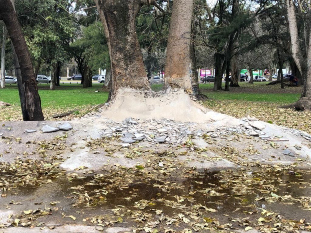 Vecinos de la zona del Bosque se mostraron cargados de indignación durante la mañana de este jueves y difundieron varias fotos entre los medios de comunicación de la ciudad, donde retrataron una precaria rampa de skate, construida con cemento y escombros con el apoyo de la raíz de un ombú de gran porte.