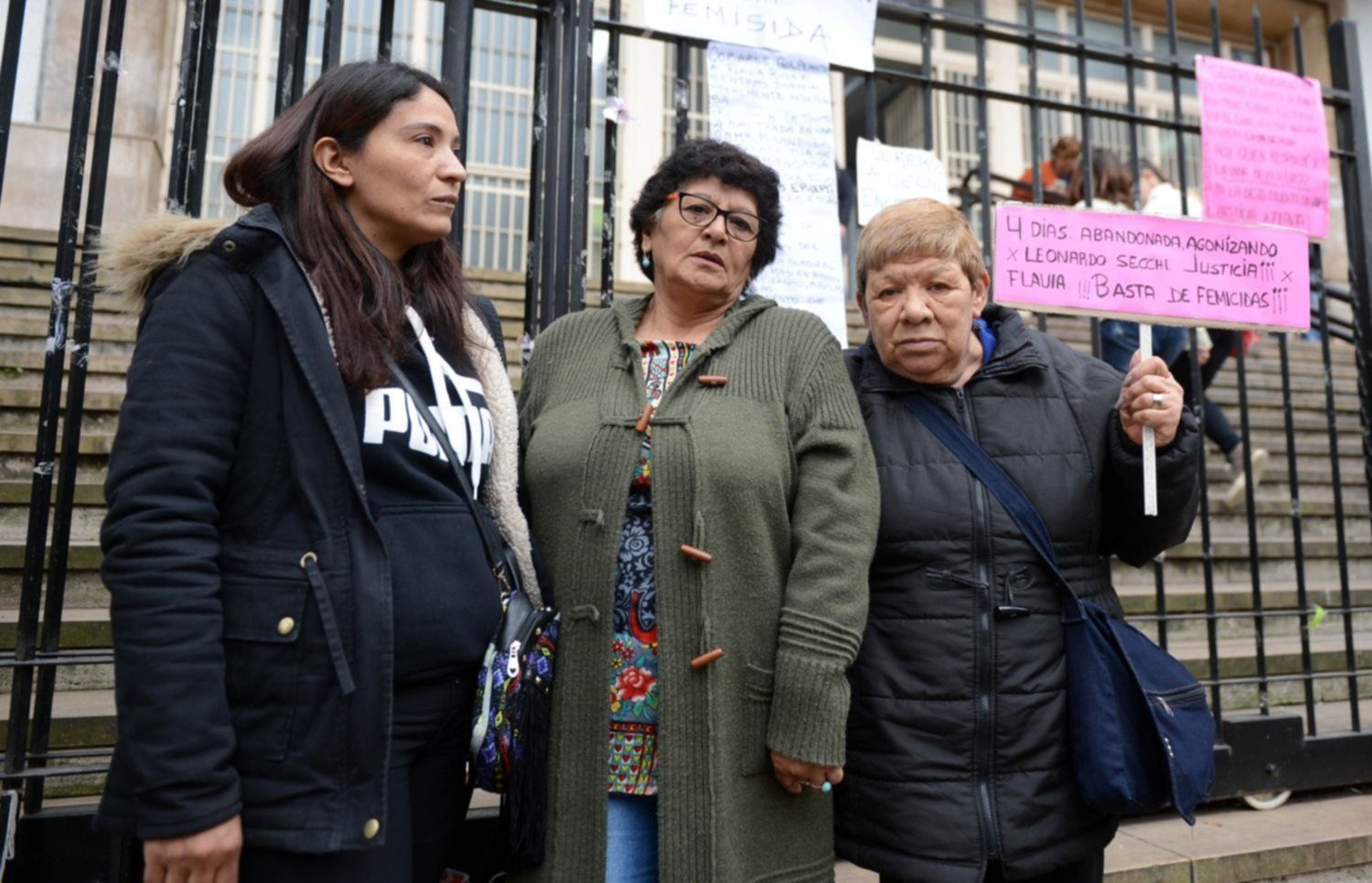 Este viernes a las 10, familiares y amigos de Flavia Rudez se manifestaron en la puerta de los Tribunales penales, en 7 entre 56 y 57. La mujer fue víctima de un brutal ataque en 2015 a manos de su ex pareja Leonardi Cechi, quien le provocó fracturas en las costillas, corrimiento de mandíbula, hundimiento del parietal izquierdo, golpes en los miembros y en el cuello y traumatismos de cráneo severos que le impedían caminar, hablar y hasta controlar esfínteres.