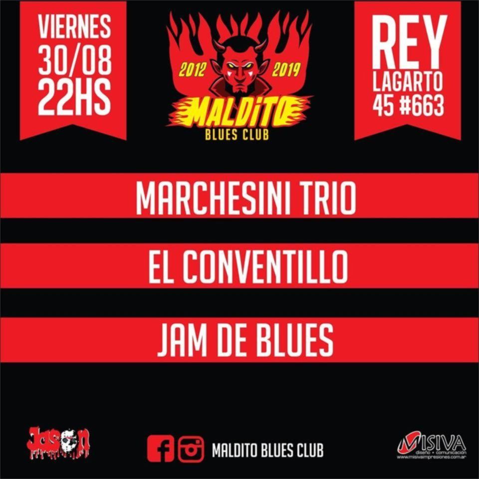 La noche de Maldito Blues presenta sobre el final de agosto dos bandas: Marchesini Trío, El Conventillo. Y para finalizar: Jam de Blues con los músicos presentes