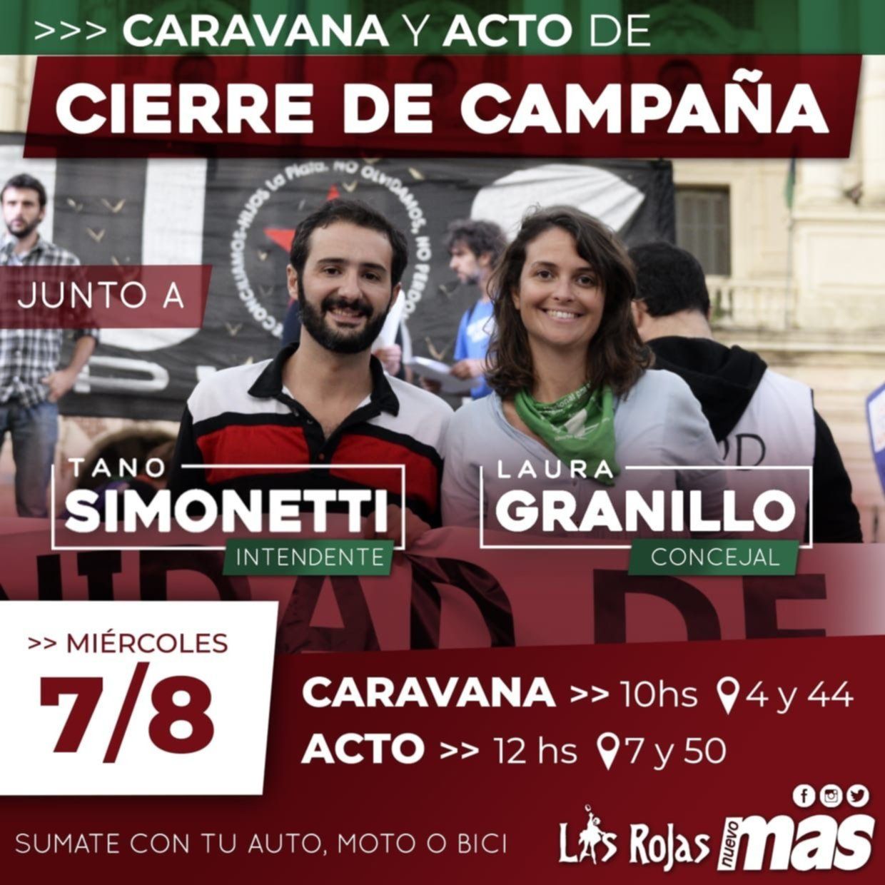 El Nuevo MAS, sector de la izquierda que en las PASO del domingo se presenta como Avanzada Socialista, realizará este miércoles una caravana de cierre de campaña encabezada por su precandidato a intendente Eric "Tano" Simonetti y la primera candidata a concejal Laura Granillo.