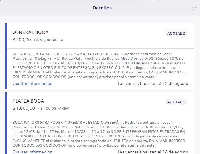 Desde la organización de la Copa Argentina habían anunciado cómo iban a llevar adelante el expendio de Generales, Plateas y Preferenciales para la parcialidad de Boca. Para ninguno de estos tres sectores quedó lugar y es por eso que muchos hinchas explotaron de bronca y no podían entender que en menos de 15 minutos no quedaban más tickets.