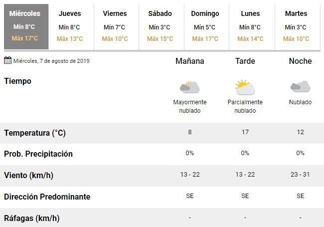 En la misma línea adelantaron que se espera un día nublado y con viento, con ráfagas que podrían superar los 30 km/h soplando en dirección sudeste.