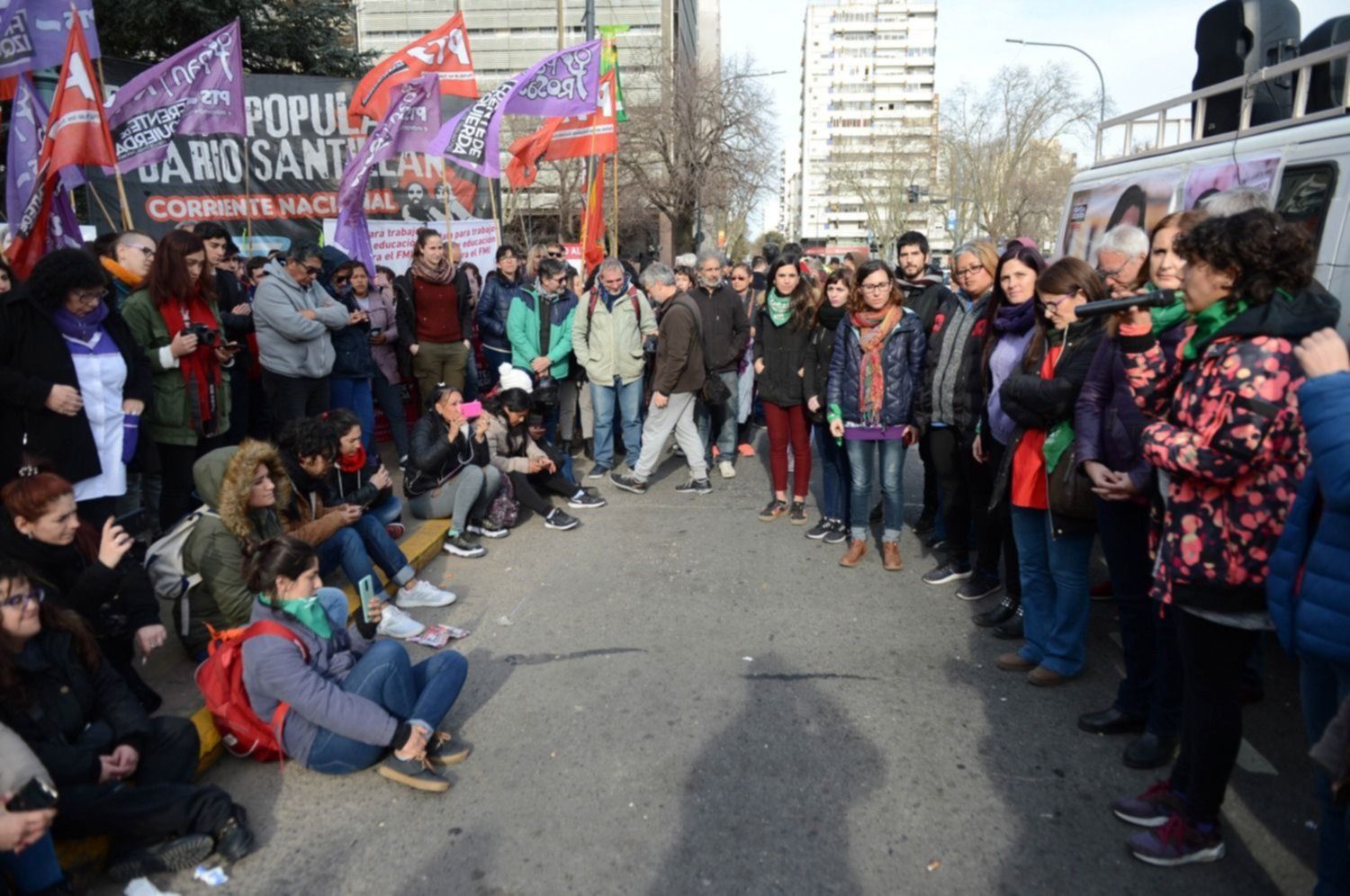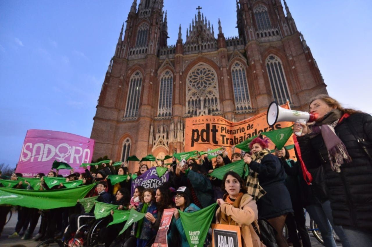 Después de eso, los militantes se sumaron al pañuelazo verde que se realizó frente a la catedral. "Queremos poner en el centro de nuestro programa política el derecho al aborto legal, seguro y gratuito que el resto de la fuerza ha dejado de lado y para nosotros es prioritario", explicaron al convocar a esa actividad.