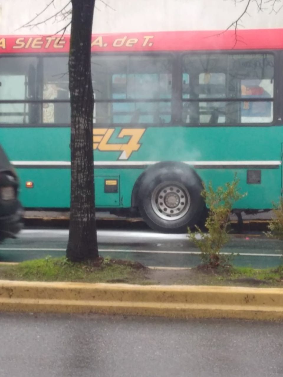 Los vecinos a bordo del micro fueron los que advirtieron el humo negro que salía por debajo del guardabarro de la goma trasera izquierda y avisaron al chofer. En cuestión de segundos, el conductor se detuvo, evacuó a la personas y, con un extinguidor, apagó el incipiente fuego.
