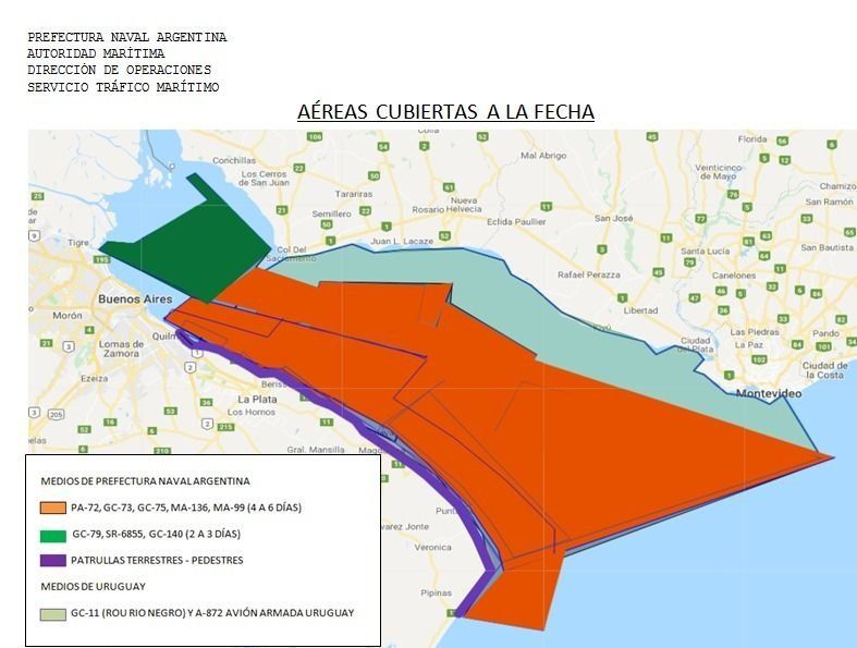 Hasta el momento, los agentes de la Prefectura no hallaron ningún tipo de rastro. En ese marco, la hipótesis más firme que manejan los investigadores es que los tripulantes se quedaron sin motor y están a la deriva en el río. Los trabajos mientras tanto, son coordinados por el Servicio de Tráfico Marítimo de la Fuerza y cuenta con 80 efectivos, dos aviones, un helicóptero, tres guardacostas, semirrígidos, motos de agua y vehículos que realizan un barrido por el área.