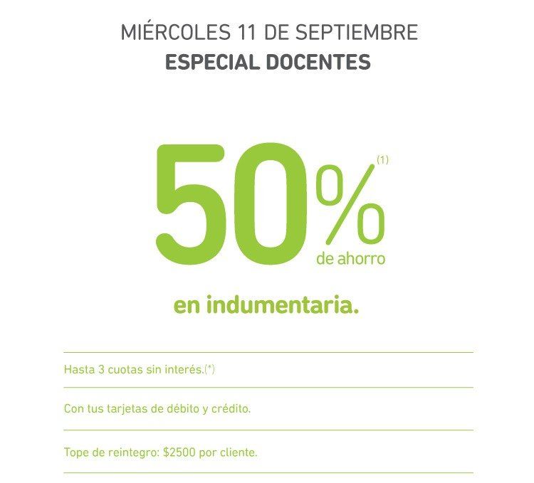 El descuento en indumentaria es únicamente para las compras realizadas con tarjetas de débito en un solo pago y en hasta tres cuotas sin interés para las tarjetas de crédito, todo con un tope de reintegro es de 2.500 pesos.