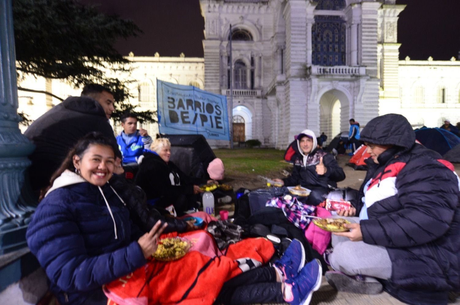 En ese marco, un centenar de manifestantes que se hallaba protestando en la puerta de la Municipalidad decidió permanecer acampando durante toda la noche, reclamando que desde la Comuna "cumpla con su compromiso de hace dos años".