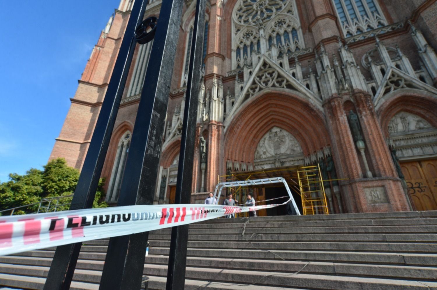 La construcción del muro de hierro que impedirá el paso es, sin lugar a dudas, el más polémico de los trabajos que se realizarán en la imponente edificio de 14 y 51. Las tareas ya comenzaron y cientos de personas se vieron sorprendidas por la instalación que empieza a tomar forma en las escalinatas del templo.