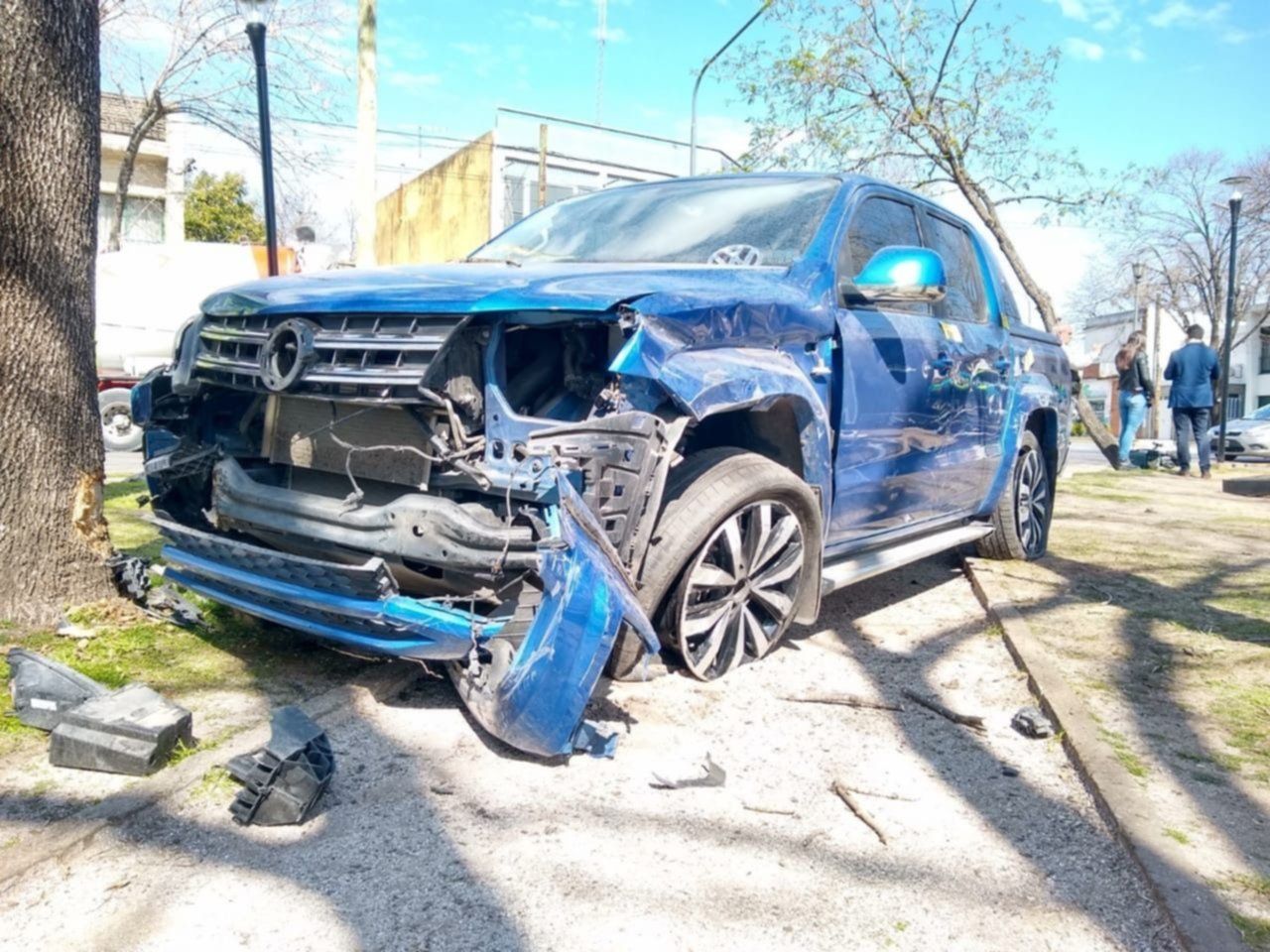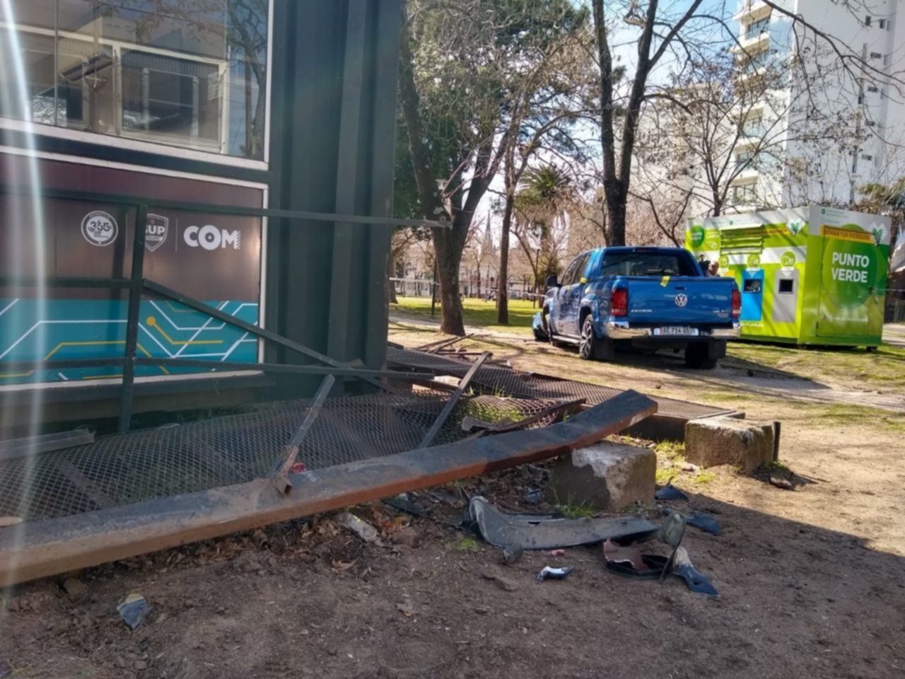 Todo ocurrió cuando el automovilista subió a la vereda y embistió a Pablo Martínez, integrante de la fuerza municipal, que se encontraba en una bicicleta a pocos metros de la garita de seguridad. La Volkswagen Amarok azul rompió la moto del agente y se detuvo varios metros más atrás, ya que a causa del impacto sufrió roturas en una de sus ruedas.
