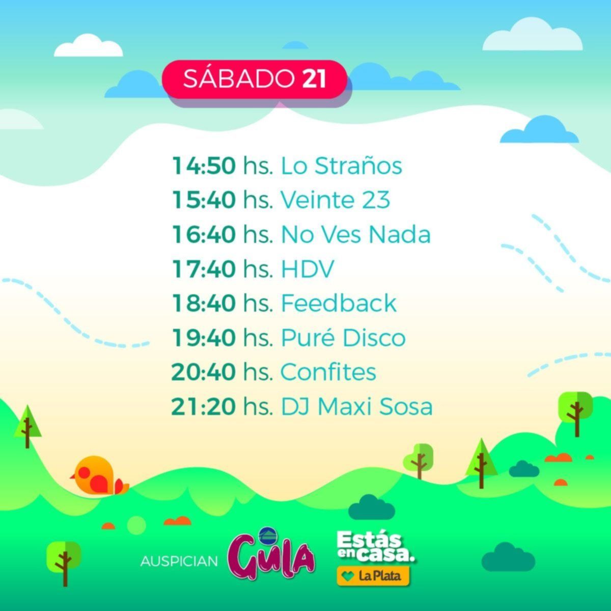 En concreto, este sábado, los vecinos y vecinas que se acerquen podrán disfrutar, cantar y bailar con el grupo "Lo Straños", desde las 14.50; "Veinte 23", a las 15.40; "No ves nada", a partir de las 16.40; "HDV", desde las 17.40; "Feedback", a las 18.40; "Pure Disco", a las 19.40; y "Confites", a las 20.40; mientras que el cierre de la primera jornada primaveral estará a cargo del talentoso DJ Maxi Sosa.