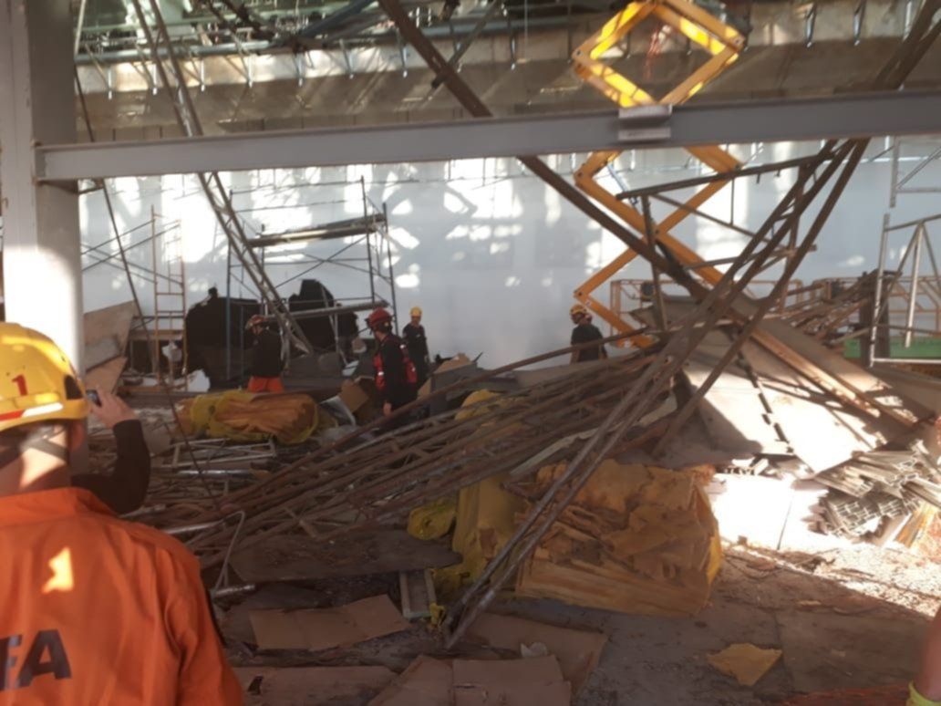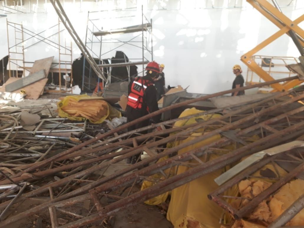 El derrumbe de una pasarela en el interior del Aeropuerto Internacional Ministro Pistarini dejó un trágico saldo de un operario muerto y al menos trece heridos. Todo ocurrió alrededor de las 16 en el marco de las obras de ampliación que se llevan a cabo en "el Zeppelin", en la nueva terminal C. Testigos capturaron imágenes de la dramática búsqueda que llevan adelante rescatistas y bomberos en el lugar.
