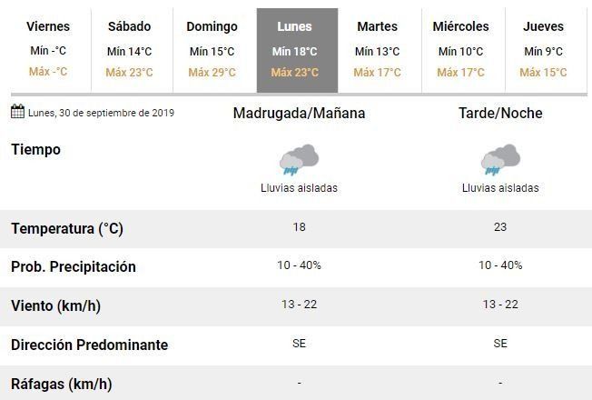 Los meteorólogos también indicaron que el fin de semana cerrará con una mínima de 15°C y una máxima prevista en 29°C.
