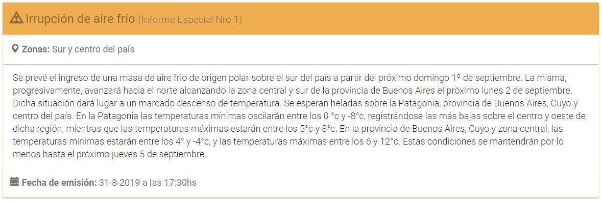 Entretanto, varios distritos bonaerenses ya sufren las inclemencias del clima, experimentan temperaturas por debajo de los 0°C y hasta en algunos de ellos se espera que hasta pueda nevar.