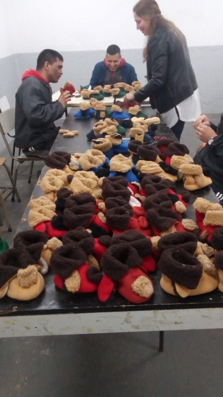 Las pantuflas se fabricaron en el curso de Armador de Calzado, que se desarrolla los lunes y miércoles de 8.30 a 12 y que cuenta con doce participantes. Los detenidos hicieron los cortes y el armado con polar, corderito y base de goma eva mientras que la docente del curso, Ivana Rill, las cosió dándoles la caracterización de pequeños perros. Cabe destacar que confeccionaron distintos números para el uso de niños de 1 a 4 años aproximadamente.