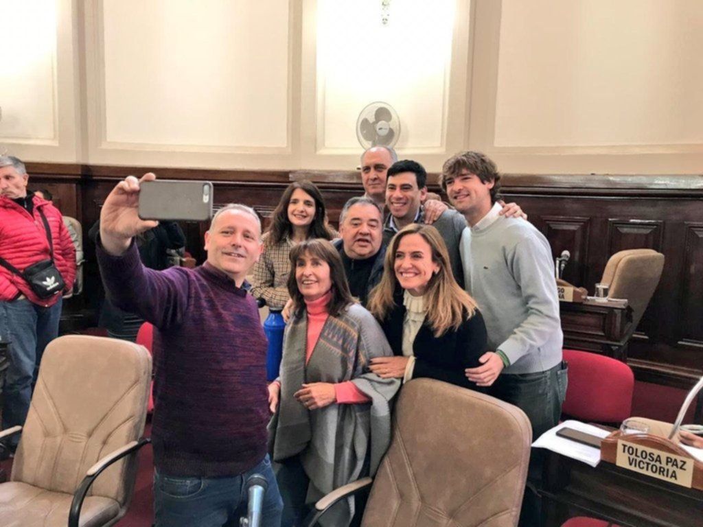 El oficalismo contó con el acompañamiento de tres concejales de otros sectores: el nuevo aliado, el peronista Fabián Lugli; el del GEN Gastón Crespo y el de Consenso Federal Luciano Sanguinetti, los tres junto a sus correspondiente "mayor contribuyente".