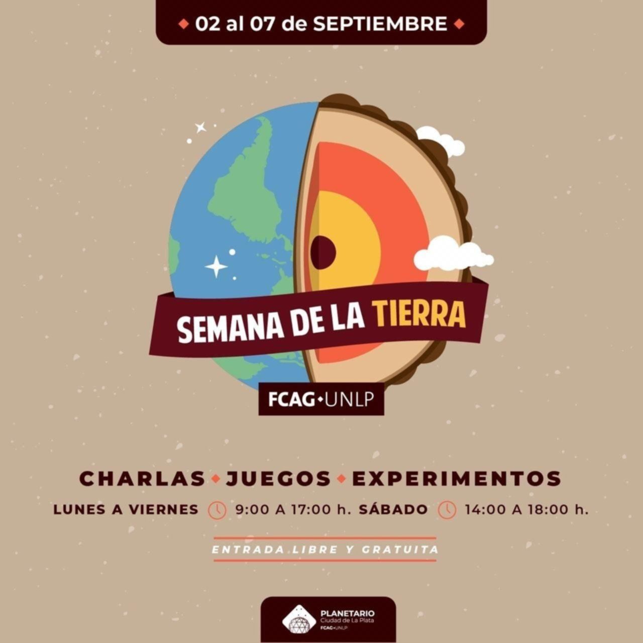 Del lunes 2 al sábado 7 de septiembre se desarrollará la 5° edición de la Semana de la Tierra en el Planetario de la Universidad Nacional de La Plata. Durante el encuentro se podrá disfrutar de juegos, experimentos, charlas y talleres donde la ciencia es protagonista. Las actividades están destinada a alumnos y profesores de secundaria y para todos quienes quieran disfrutar de la ciencia.